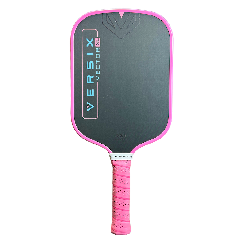 Elongated, thermoformed, and boasting a long handle, we like how the VERSIX Vector XL Pickleball Paddle eases the transition to pickleball for tennis players while helping longtime players achieve reach and power with every shot. The elongated 16.5” shape boasts a thermoformed construction that bonds the 5.75” long handle and main 10.75” by 7.5” main body together for a strong and durable feel. This extended hitting surface of this paddle is constructed from T700 Toray Raw Carbon fiber which relies on a rigid weave and natural texture to cause the ball to dwell on the surface and then spin off of it, opening up a world of technical shots and dinks.
