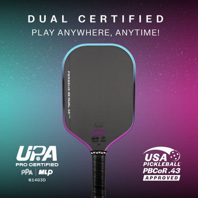The JOOLA Perseus Pro 3S Dual 16mm Pickleball Paddle gives us the same pro-level DNA of the original Perseus 3S 16mm, but now with the certifications to match its performance. This model is not only UPA-A approved, but also USA Pickleball (USAP) certified for sanctioned play and Pbcor compliant, so we can compete with confidence no matter the format. That added peace of mind pairs beautifully with a refined 16mm Propulsion Core and foam perimeter, which dials back raw pop in favor of softer touch and superior vibration absorption. The result is a paddle that still delivers put-away power but leans into control, stability, and forgiveness across the entire face.